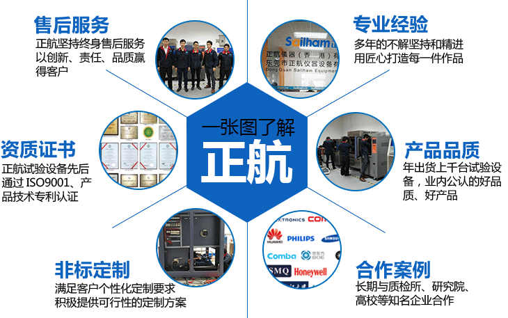 正航儀器設(shè)備有限公司是一家致力于各種環(huán)境檢測試驗設(shè)備研發(fā)、設(shè)計、制造、銷售服務(wù)為一體的專業(yè)性企業(yè)。并陸續(xù)在全國各大城市建立營銷及售后服務(wù)網(wǎng)絡(luò)。我們合作客戶有質(zhì)檢所、科研單位、大學(xué)、國企、大型企業(yè)。設(shè)備的精密情、穩(wěn)定性、售后服務(wù)等都有保障。公司不斷精益求精,創(chuàng)造符合多行業(yè)可靠性試驗標準要求的優(yōu)質(zhì)產(chǎn)品,客戶遍及于電子、電池、TP、半導(dǎo)體、LED光電、塑膠塑料、汽車、軍工、大專院校、航天、科研、計量、質(zhì)檢、太陽能光伏...等科技產(chǎn)業(yè),從產(chǎn)品研發(fā)到售后服務(wù),每一個環(huán)節(jié)之間都以客戶的觀點與需求作為思考的出發(fā)點,專注非標定制。![]() |